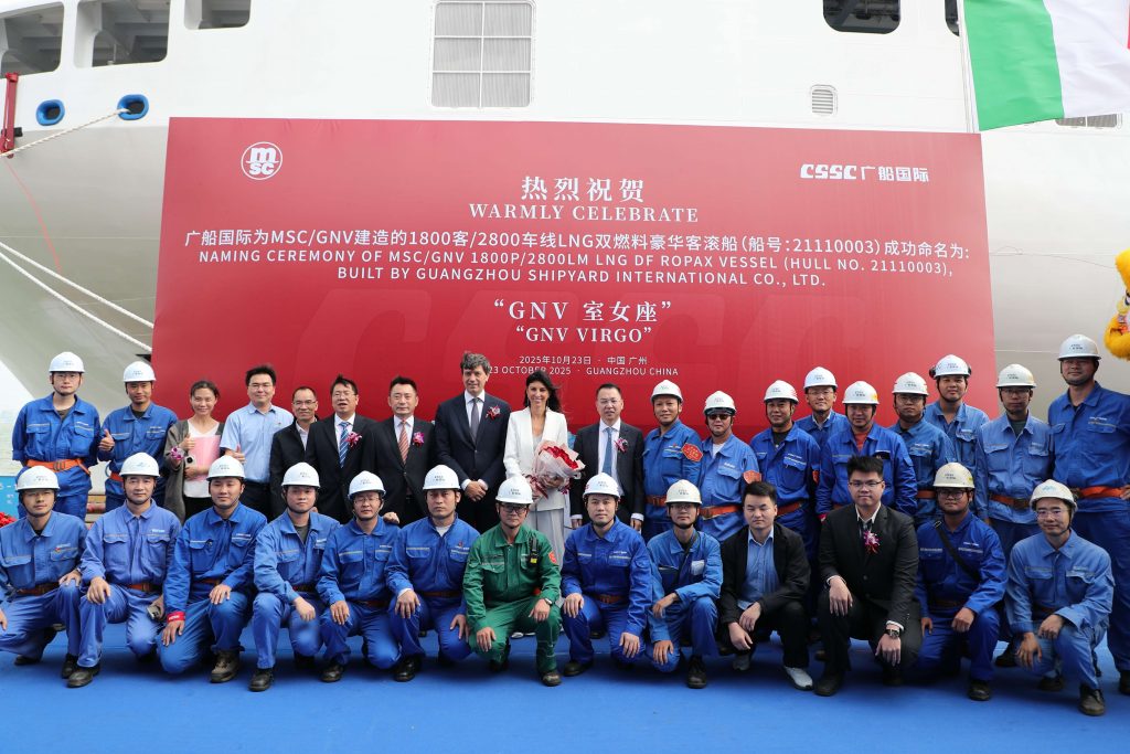 GNV, compañía de ferris del Grupo MSC, participó ayer en los astilleros Guangzhou Shipyard International (GSI) de Cantón, China, en la Ceremonia de Entrega de GNV Virgo, elprimer buque de la flota propulsado por GNL (gas natural licuado).
