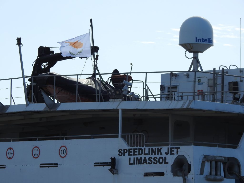 El «Speedlink Jet» construido por Derecktor Shipyards de Bridgeport(Estados Unidos) en 2004 tiene 71,75 metros de eslora por 18,6m. de Manga y 2.65m. de calado, con capacidad para 400 pasajeros, 65 vehículos y bandera de Chipre.