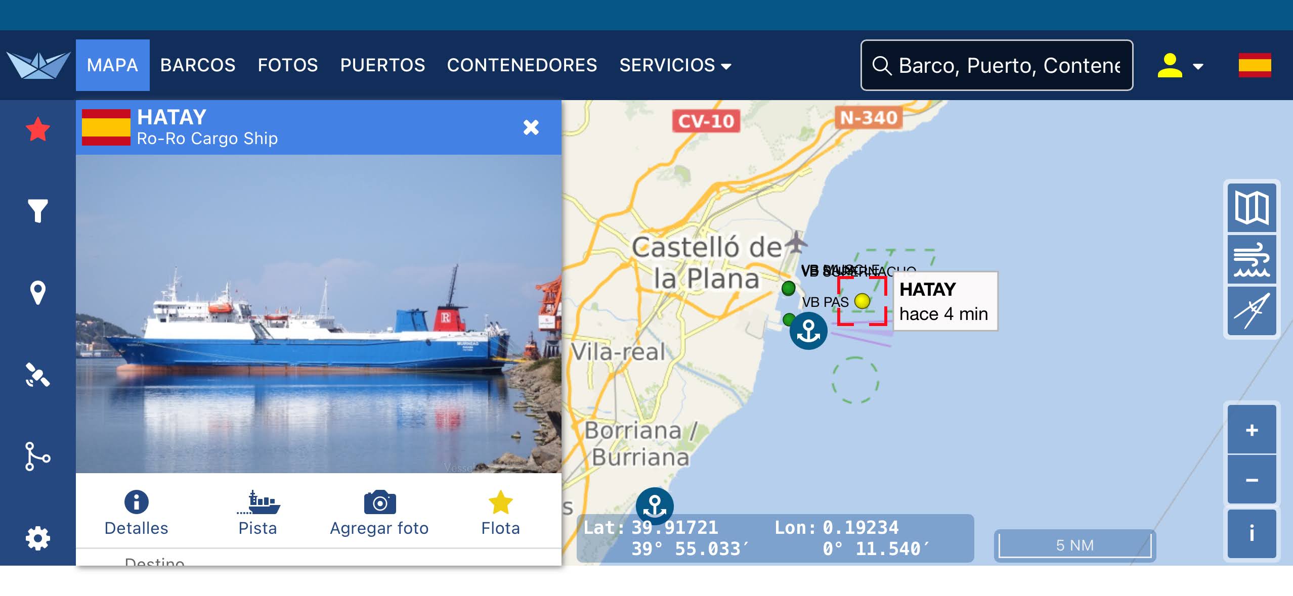 El Ro Ro «Hatay» propiedad de Baleària, ha abandonado esta mañana el puerto de Burriana, donde fue sometido a importantes trabajos para ponerlo a punto y ahora se encuentra en la zona de fondeo del puerto de Castellón y regresando nuevamente a Burriana, veremos si como paso a previo a comenzar su etapa para la naviera dianense ya que a finales de mes, debe dar comienzo la prueba piloto para transportar los residuos de las Pitiusas hasta Mallorca, además de realizar servicios con mercancías peligrosas entre Dènia e Ibiza.