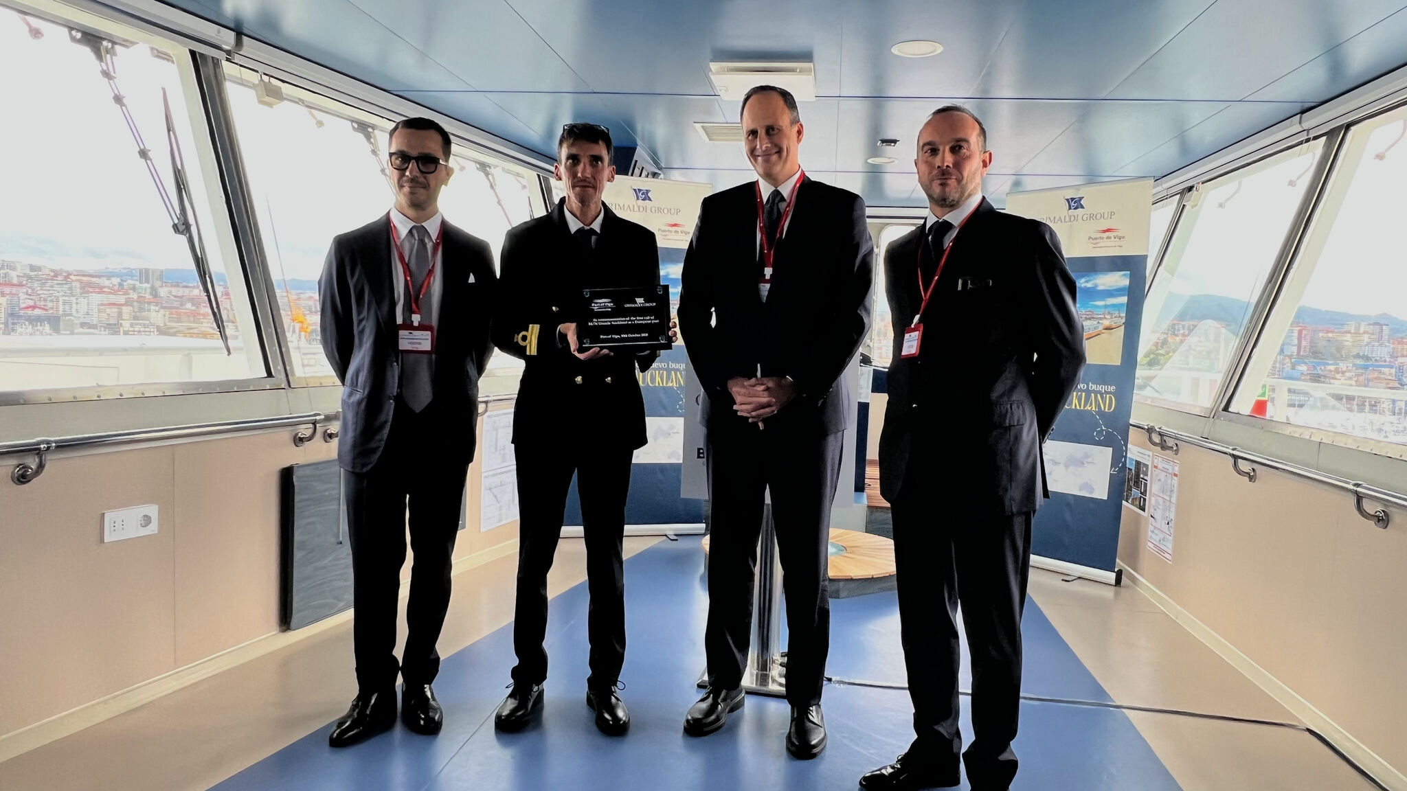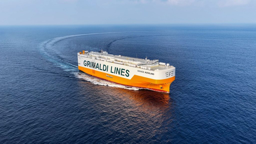 Grimaldi Group ha presentado hoy en el Puerto de Vigo el buque “Grande Auckland”, que refuerza la conexión marítima entre Asia y Europa dentro de la red global del grupo.