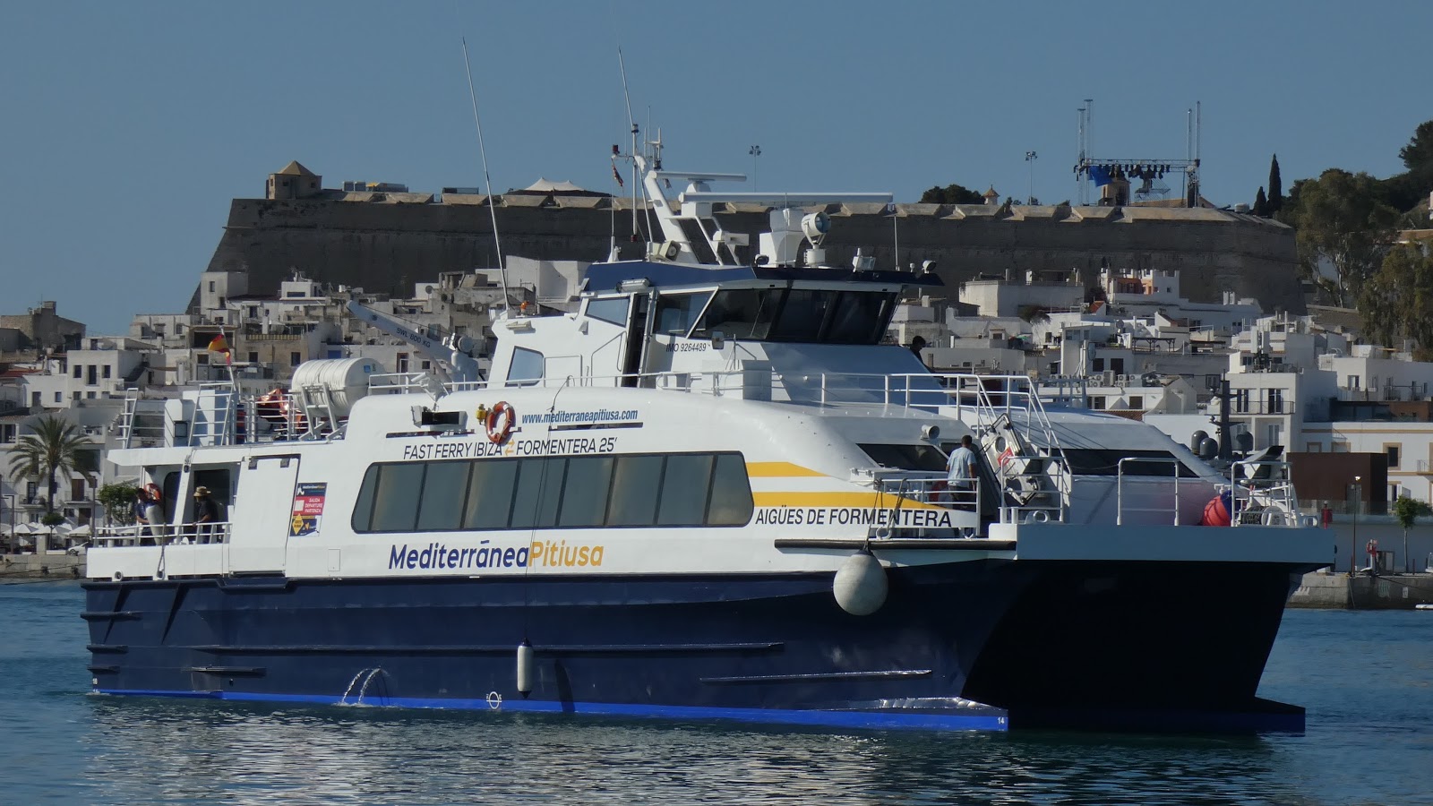 El Fast Ferry «Aigües de  Formentera» de Med. Pitiusa-Trasmapi, se encuentra realizando su mantenimiento anual en el Varadero Ibiza con el «Blau de Formentera» esperando comprador, por lo que la naviera mantiene activo al «Formentera Express» y el «Aires de Formentera» entre las Pitiusas.